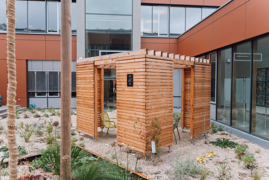 Besonders die Zusammenarbeit mit unseren Auszubildende, welche die Schüler bei der Planung und Gestaltung unterstützen, trug zur erfolgreichen Umsetzung des Projektes bei. Unter professioneller Anleitung wurde ein Pavillon geplant und gebaut – ein Highlight der neuen Oase.