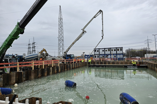 Baugruben mit Unterwasserbetonsohlen im Schaltwerk Isar
