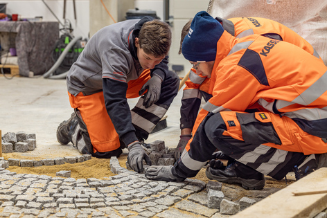 Pflastern. Mauern. Rohre verlegen.
