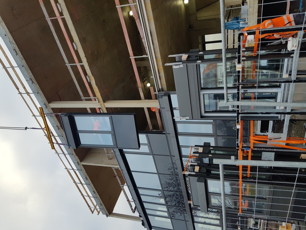 In Linienfertigung und mit hohem Vorfertigungsgrad produzierten unsere Mitarbeiter die einzelnen Elemente – Fassadenverkleidung, Verglasung und Sonnenschutz wurden bereits in der Produktionshalle montagefertig zusammengesetzt. Das neu angeschaffte XXL-Stabbearbeitungszentrum mit 5-Achs-Bearbeitung steigerte die Effizienz der Abläufe zusätzlich.