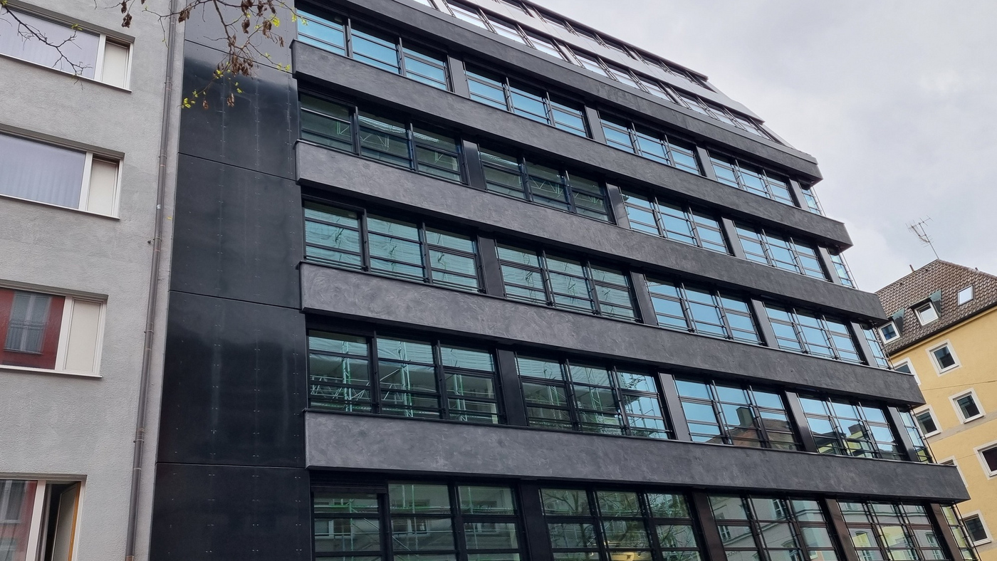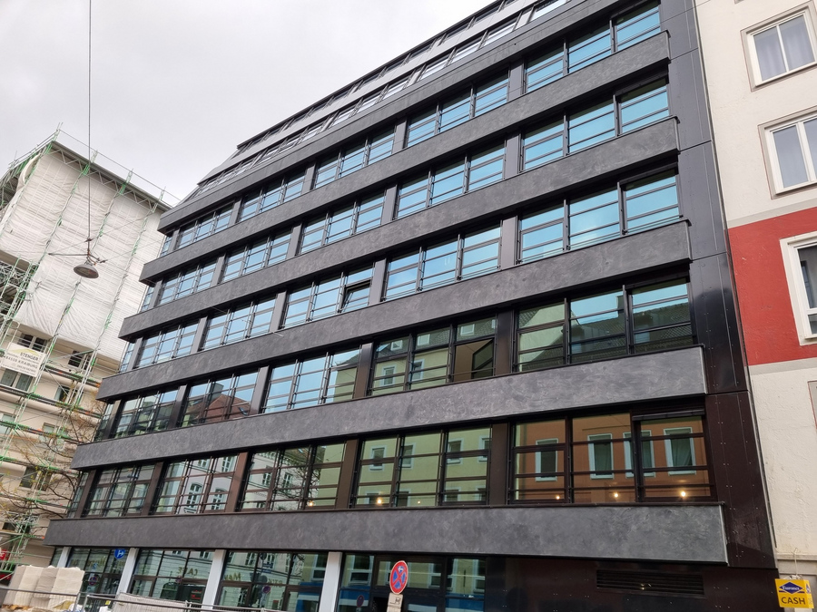 Fassadensanierung heißt für uns: alte Flächen neu denken, frisches Design schaffen und dabei im Sinne von Sicherheit und Energieeffizienz modernisieren. Im Rahmen der Sanierung und Erweiterung eines Bürogebäudes in der Münchener Schillerstraße durften wir genau diesen Ansätzen folgen. Unser Leistungsspektrum umfasste die Fertigung und Montage einer Pfosten-Riegel-Fassade mit Einsatzfenstern sowie einer Schrägfassade. Den Sonnenschutz koordinierte KASSECKER als Nachunternehmerleistung.