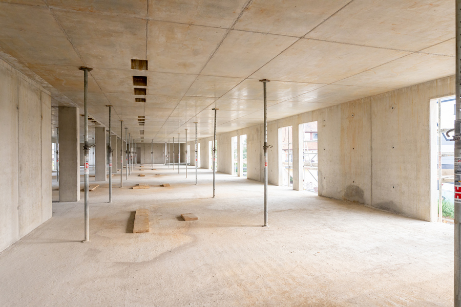 Architektonisches Highlight des Projekts: Alle Betonaußenwände und sichtbaren Deckenbereiche blieben unverputzt und ohne Anstrich – der industrielle Charakter des Rohbaus wird hier zum Designelement.