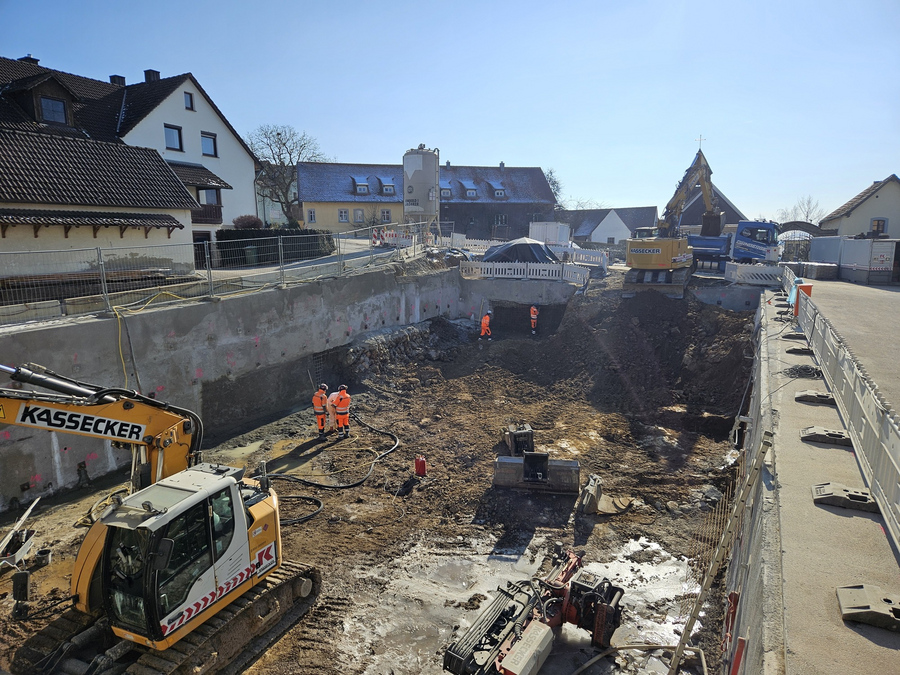 • Herstellen der schlüsselfertigen Baugrube mit einer rückverankerten Spritzbetonschale
