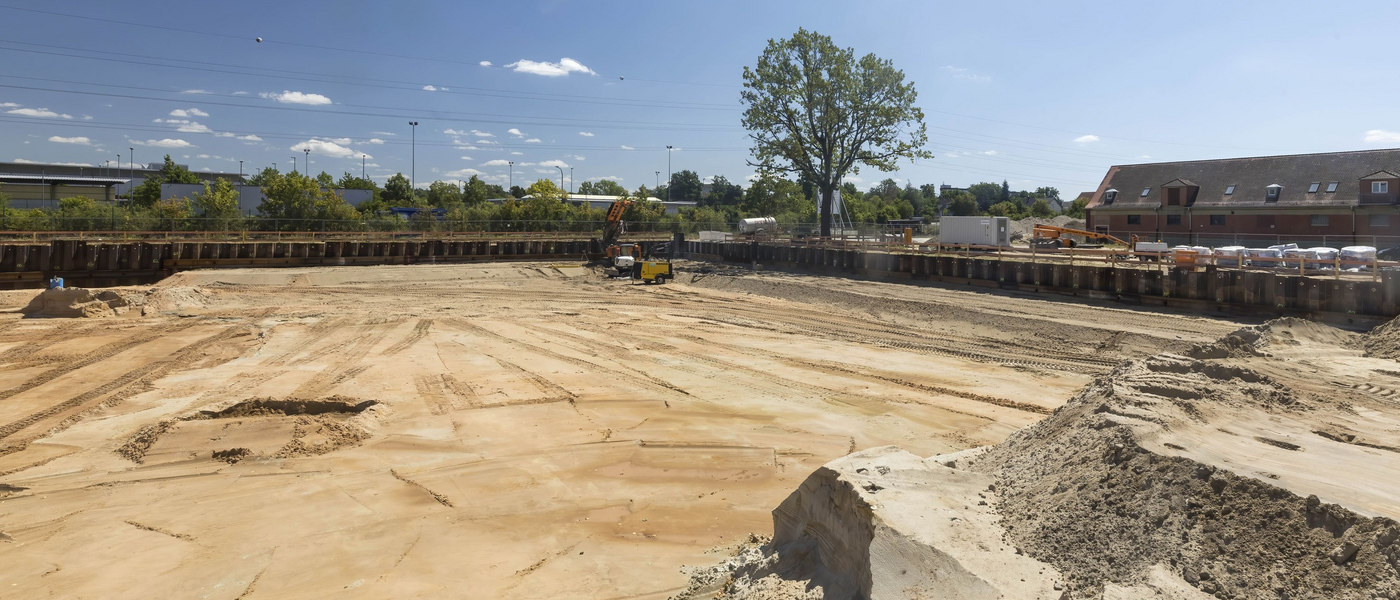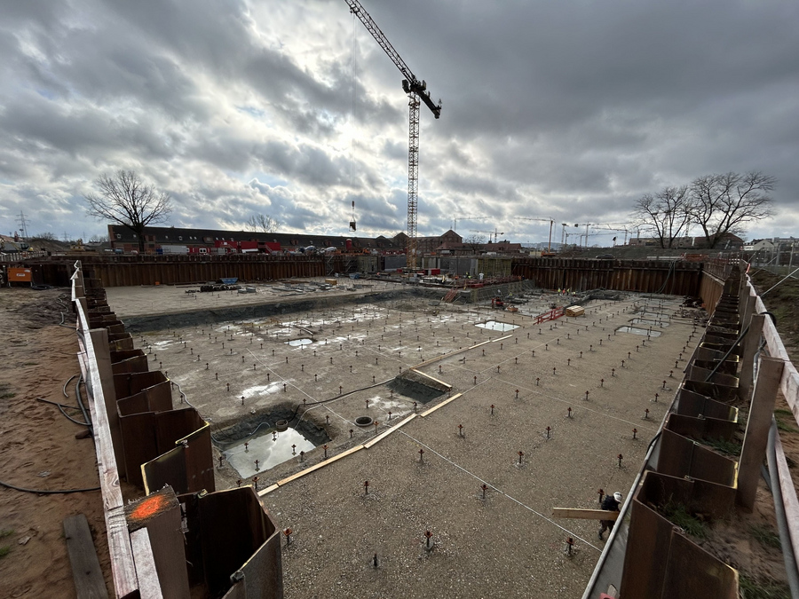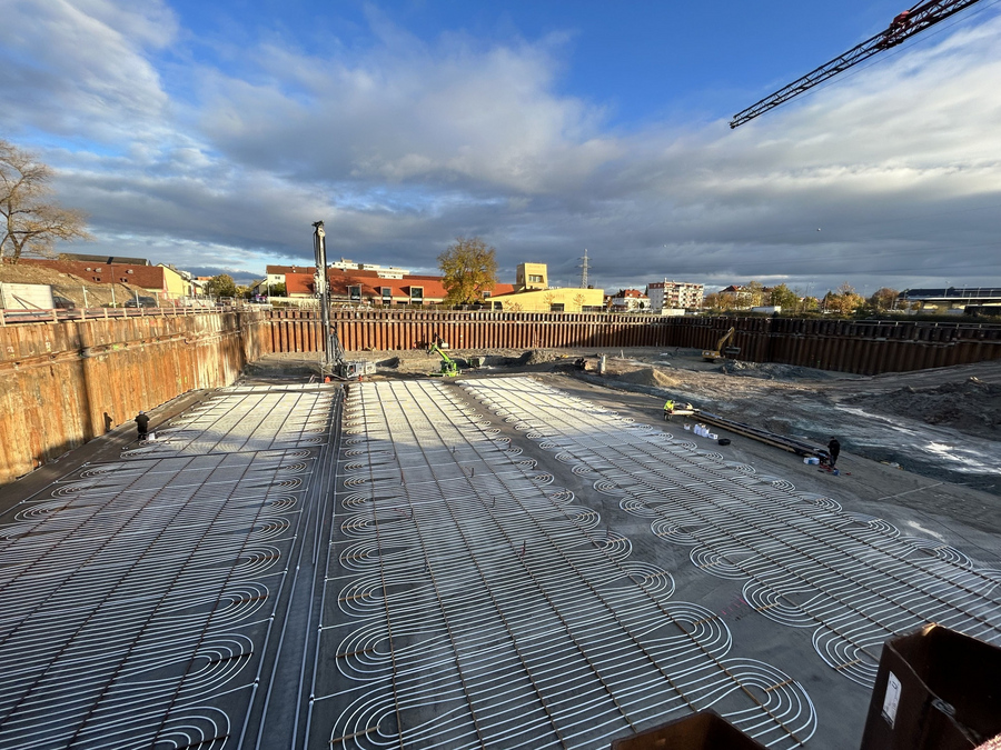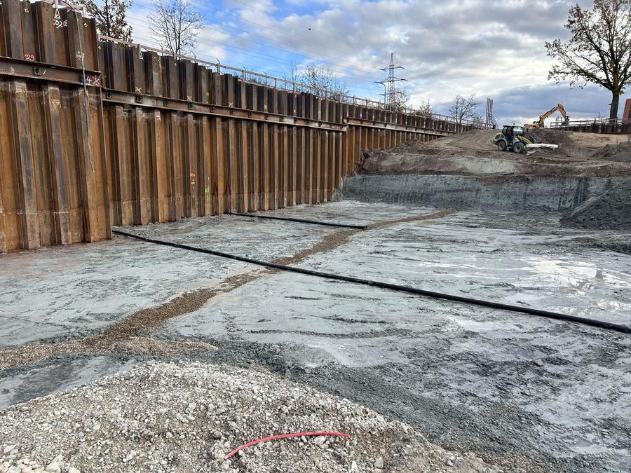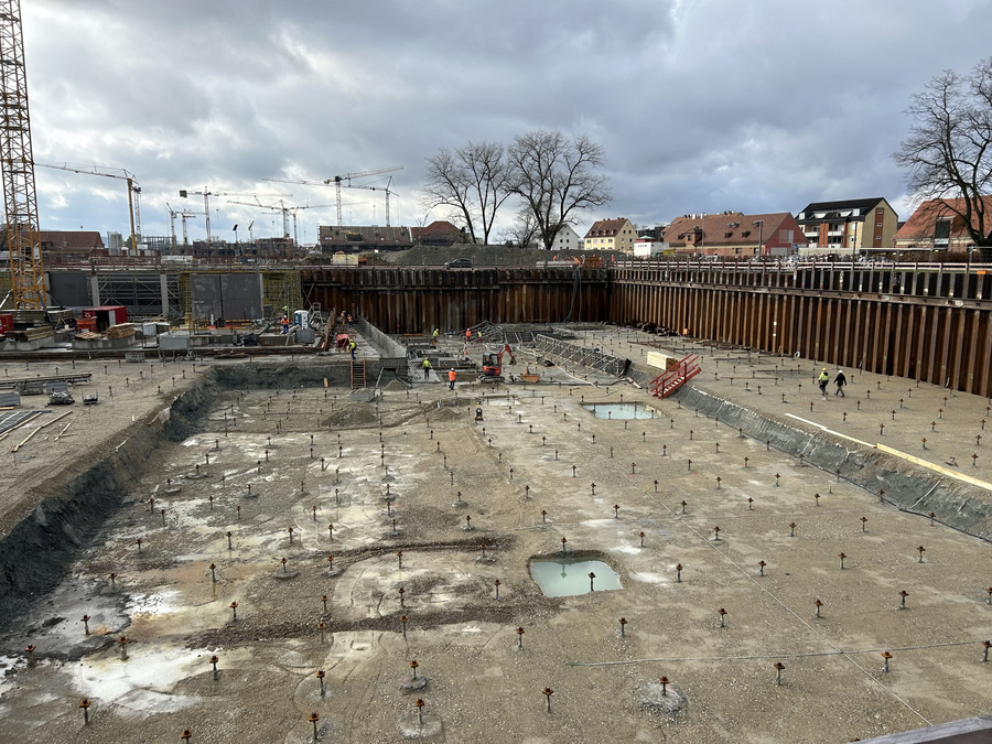 Die Eckdaten des Projekts sprechen für sich: Bis zu elf Meter reicht die Baugrube in die Tiefe. Die Fläche der Baugrube rund 9500 m², wovon allein 4200 m² durch Spundwandverbau gesichert wurden. Die Rückverankerung erstreckt sich über 3600 m Litzenanker, mit einem Gurtungsmaterial von rund 45 Tonnen. Um eine Auftriebssicherung gegen den sehr hohen Grundwasserstand zu gewährleisten, wurden zusätzlich 621 Daueranker bis zu neun Meter tief in den felsigen Untergrund gebohrt und verankert.