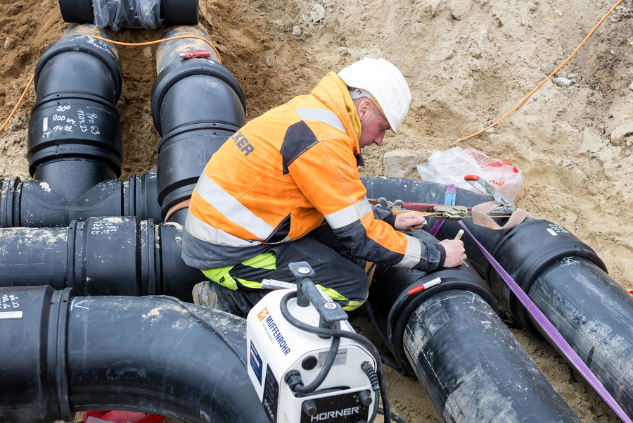 Abwasserkanal aus PEHD in Spiegel- und Muffenschweißung